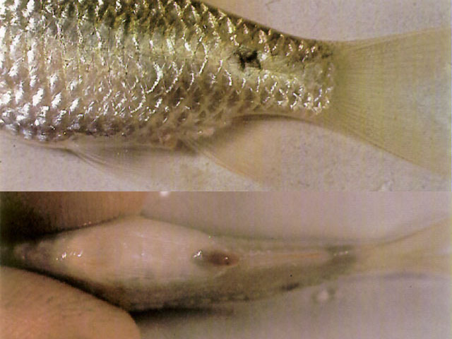 (English) The anal porus (or anus, excretion porus) is red and swollen and protrudes. This disease usually occurs together with a swollen belly and other bacterial infections. (See also: anus)