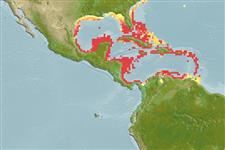 Marine; reef-associated; depth range 0 - 50 m. Subtropical; 34°N - 8°N, 100°W - 60°W (Ref. 188)
